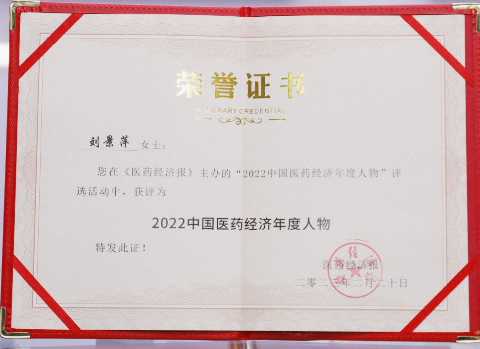 PG药业集团董事长刘景萍当选“2022中国医药经济年度人物”